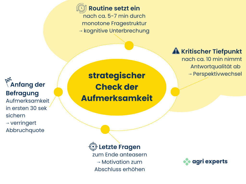 - Logikbasierter Aufmerksamkeitscheck: z. B. durch Fangfragen: Wie häufig lesen Sie Fragen in einer Umfrage aufmerksam durch?